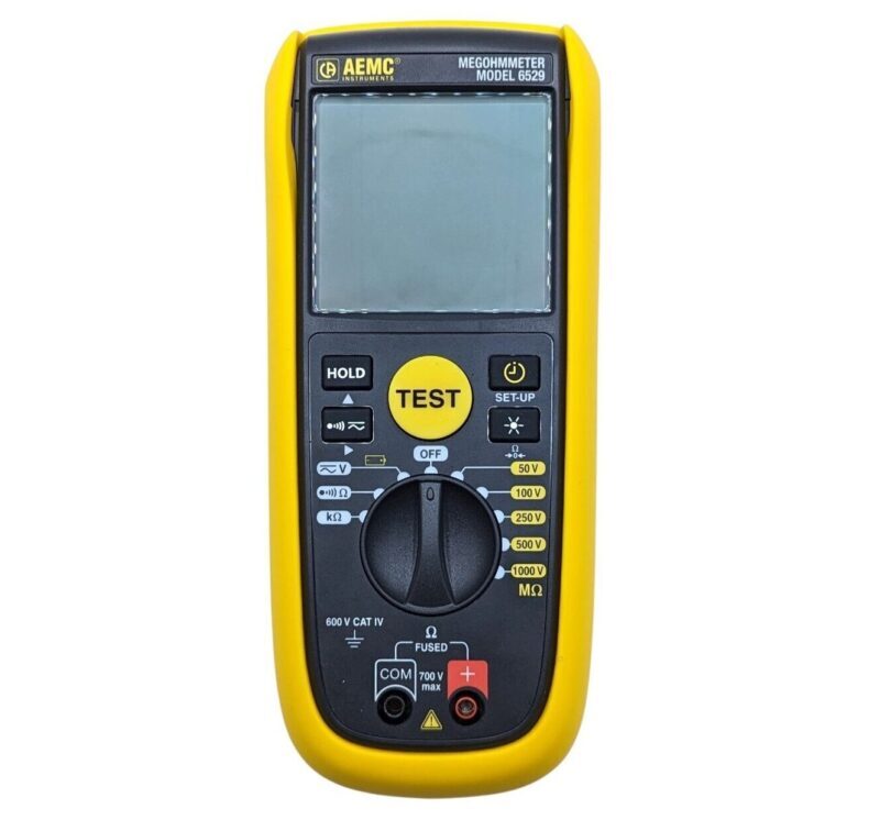 The AEMC Instruments 6529 is a low cost 1000V hand-held instrument that offers Multimeter functions as well as Megohmmeter functions. This model is created for the commercial, industrial and contractor markets and is simple to use. It’s priced at a point tailored to contractors and independent electricians that need to check the quality of insulation as well as perform basic electrical measurements.