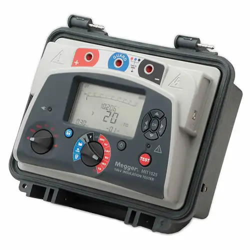 The Megger MIT1025 is a 10 kV insulation resistance tester that is designed for the diagnostic testing and maintenance of high voltage electrical equipment. It is a compact and lightweight instrument that is easy to use and transport.