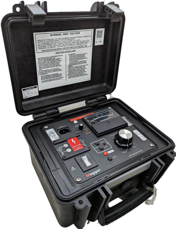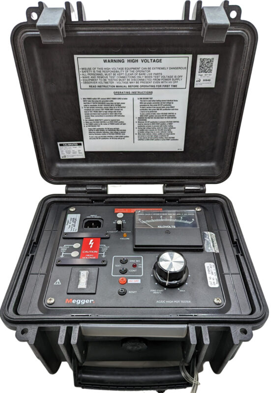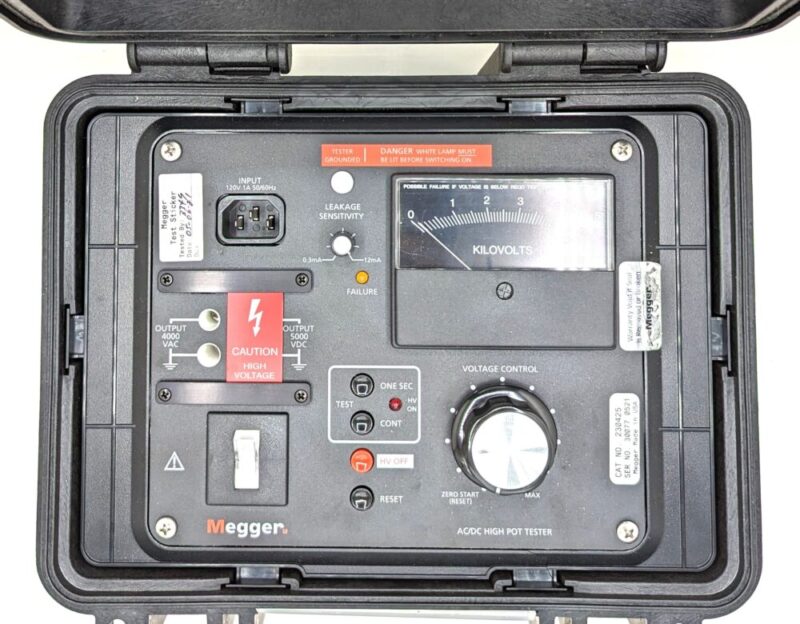 The Megger 230425 is an AC/DC High-Pot Tester, also known as a dielectric withstand tester. It’s used to assess the insulation strength of electrical equipment and ensure safety by applying high voltage to test the insulation’s ability to withstand stress.
