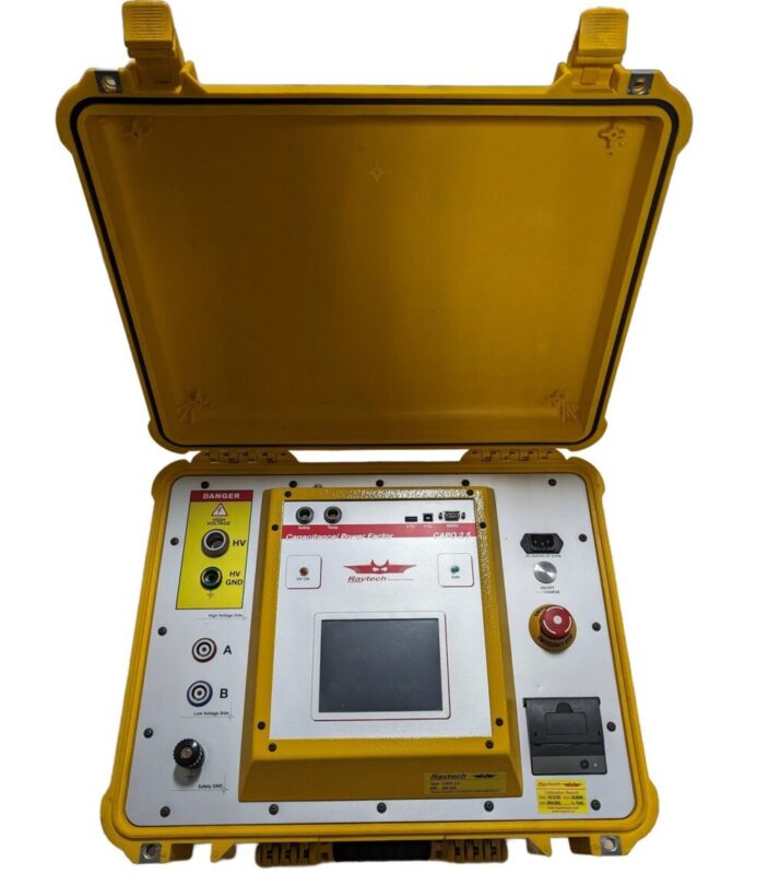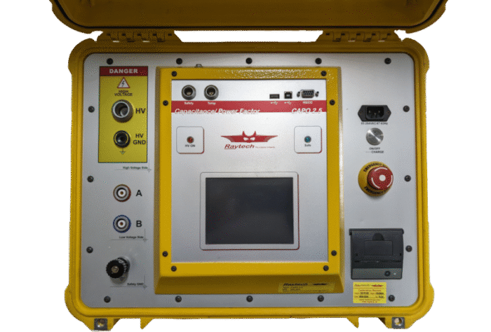 The Raytech CAPO 2.5 is a battery-operated, portable capacitance and tan δ power factor test instrument designed for the insulation properties measurement of a variety of equipment, including power transformers, bushings, and other kinds of insulation. It is built into a rugged case for field use and is known for its high precision and quality.